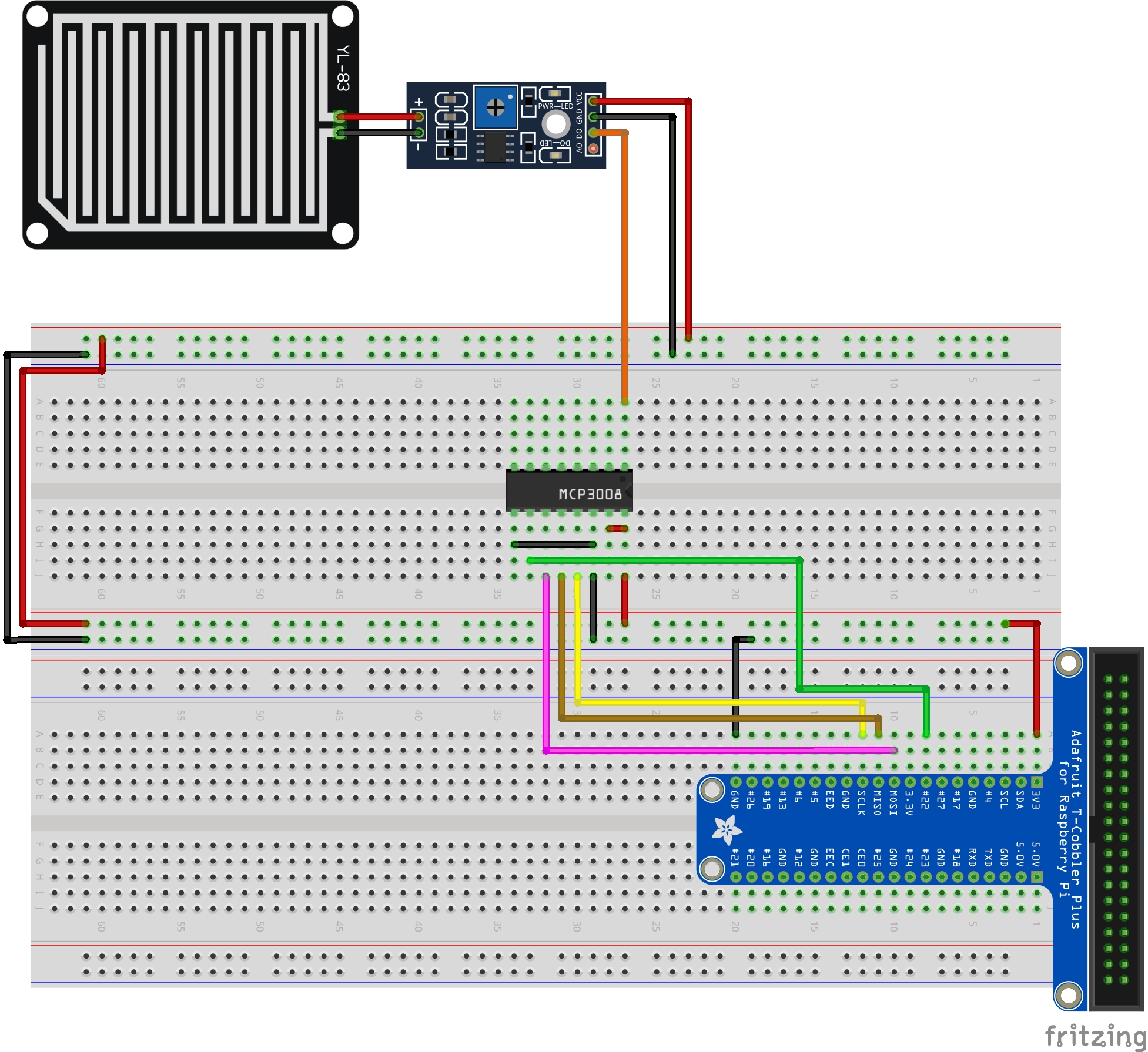 | YL-83 | N/A | D0 | Cable | MCP3008 | 1 | CH0 |