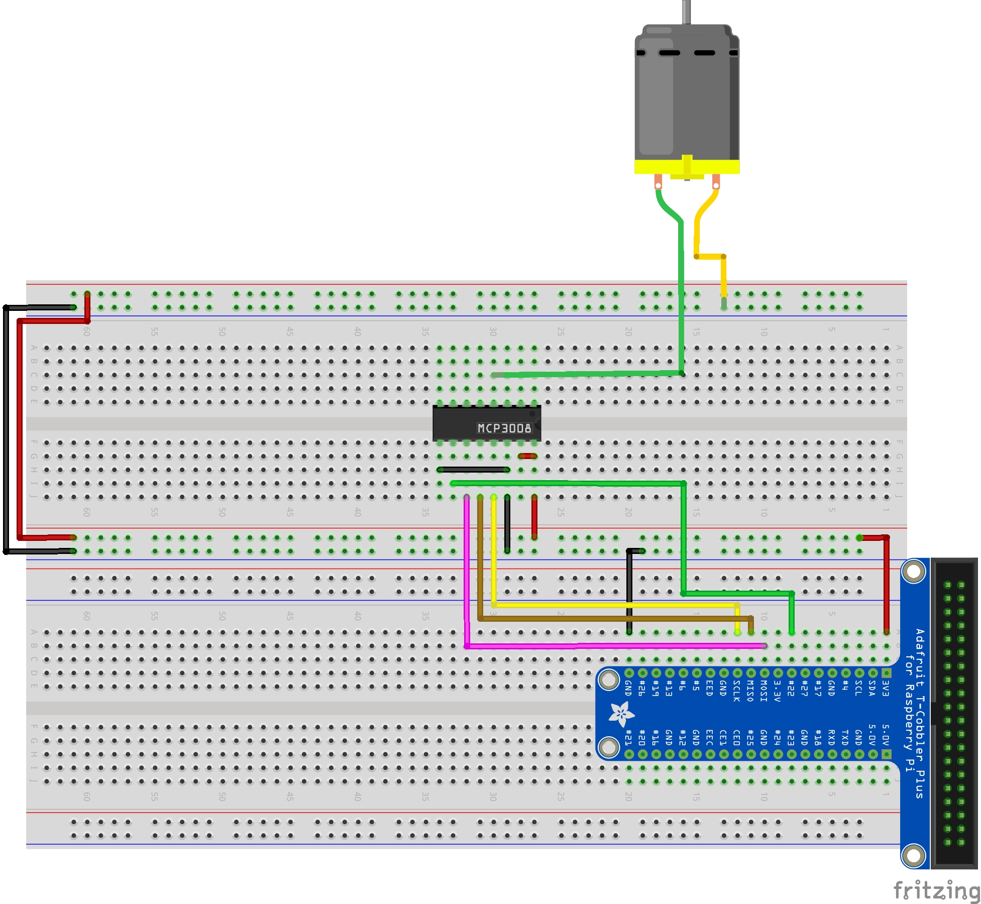 | Motor 3V | N/A | VCC | Cable | MCP3008 | 4 | CH3 |